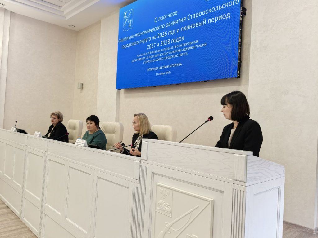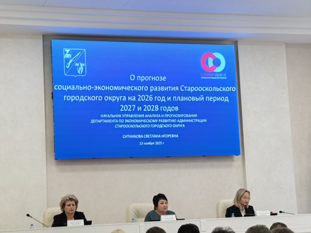 Сегодня состоялись публичные слушания по обсуждению проекта решения Совета депутатов Старооскольского городского округа «О бюджете Старооскольского городского округа на 2026 год и на плановый период 2027 и 2028 годов» под председательством заместителя главы администрации Старооскольского городского округа Надежды Владимировны Кудиновой.